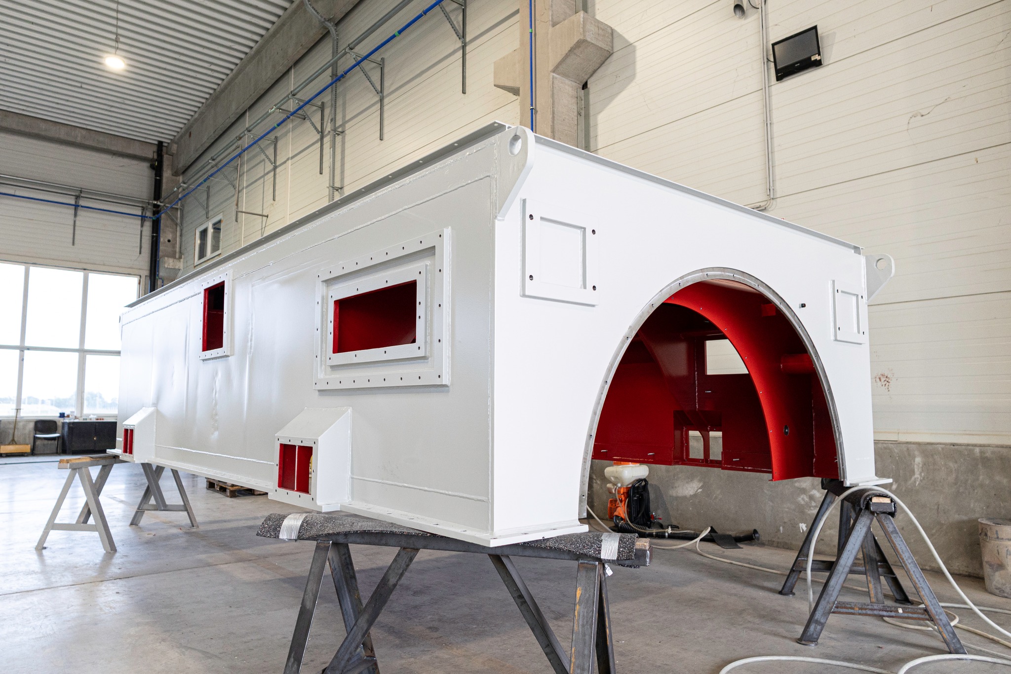 Büszkék vagyunk rá, hogy legújabb termékünkkel tovább bővült gyártási portfóliónk — elkészült az SBS Kft-nél az első generátorház, amely egy közel 13 tonnás, két részből álló szerkezet. A teljes gyártási folyamatot — hegesztés, forgácsolás és festés — kollégáink végezték precíz, magas színvonalú munkával.