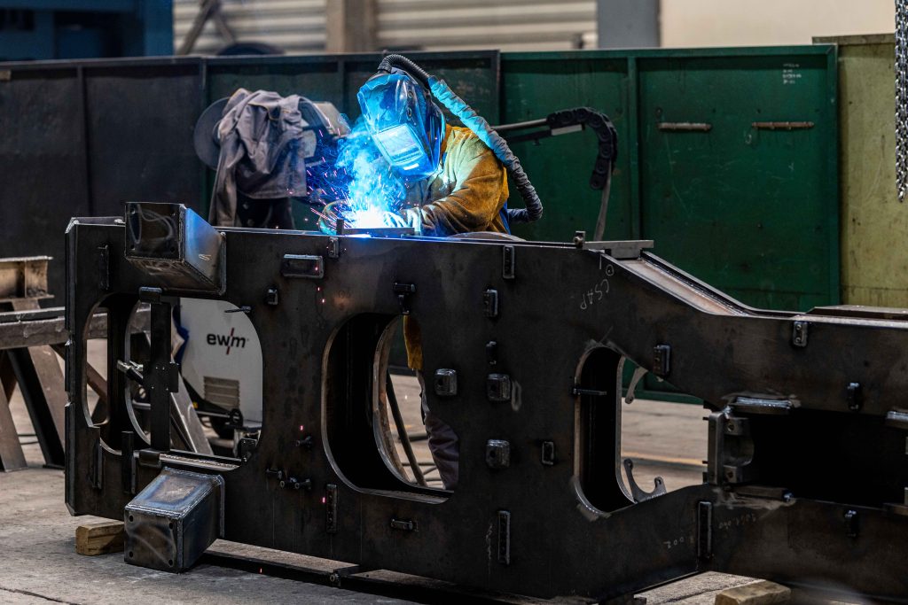 Speciális hegesztési technológiát igénylő, nagy szilárdságú anyagból készült alvázszerkezetek gyártása a lemezeléstől az alapozott állapotig.